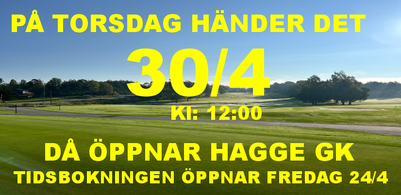 Nu är banöppningen nära och på torsdag 30/4 händer det. Klockan 12 är det dags och bokningen öppnar i morgon Fredag 24/4 klockan 12.  Vi syns på Hagge Golfklubb.